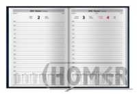 Kalendarz książkowy w twardej skóropodobnej oprawie ze wstążką. Układ kalendarium dzienny. 336 stron. Wymiary 143x211 mm