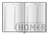 Kalendarz książkowy w twardej oprawie ze wstążką. Układ kalendarium tygodniowy. 128 stron. Wymiary 115x155 mm