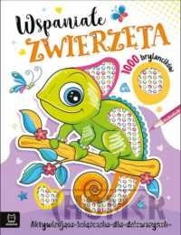 Wspaniałe zwierzęta zapraszają do świata kreatywnej zabawy rozwijającej motorykę małą, ćwiczącej koncentrację, cierpliwość, spostrzegawczość i liczenie. W tej aktywizującej książeczce dla dziewczynek fanki błyskotek znajdą ponad 1000 wielobarwnych naklejkowych brylancików oraz 12 kart z ilustracjami zwierząt. Zapraszamy na spotkanie z narwalem, flamingiem, lamą, jednorożcem, jeleniem, motylem, pawiem, smokiem, kotem, słoniem, kameleonem oraz psem. Czyj ogon jest najbardziej imponujący? Kto nosi czapkę z pióropuszem? Kogo słabością są bransoletki? Kto lubi dbać o swoją sierść? Obrazki można oderwać, a następnie ozdobić, pokolorować według instrukcji lub własnego pomysłu oraz wykonać proste zadania na przeliczanie i spostrzegawczość. Lubiana przez dzieci tematyka rysunków i proste zadania aktywizujące zachęcą dzieci do kolorowania. Pokoloruj, udekoruj, wskaż i policz - baw się brylancikami z zwierzętami.
