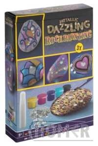 Zawartość fantastycznie nadaje się do udekorowania kamieni i stworzenia z nich istnych dzieł sztuki. Na kamienie można nakleić naklejkę załączone kryształki lub namalować cokolwiek dziecko sobie wymyśli. Wymiary pudełka: 16 x 21 x 4 cm.